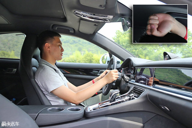 将驾驶座调整至最低后,身高184cm的体验者可以获得一拳的头部空间。对于Panamera这种有跑车味道的行政级轿车,这个位置往往坐着这辆车的主人,所以座椅记忆、加热、通风等功能一应俱全。