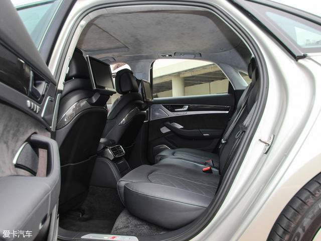 其实S8的空间并不比A8L更出色,后排座垫非常长,对于腿部的支撑非常到位,同时后排配备的娱乐系统看起来也十分高端,看得出来S8还是尽力去满足后排乘客的需求。